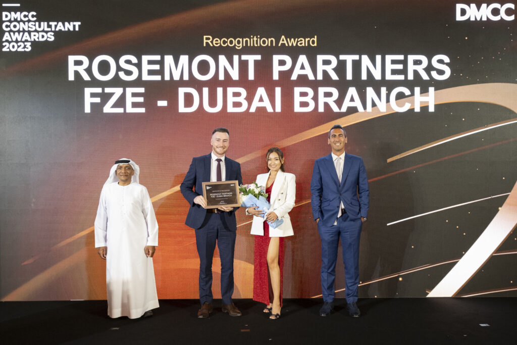 We are pleased to announce that Rosemont Partners was honoured at the recent DMCC (Dubai Multi Commodities Centre) Consultant Awards, where we received a prestigious Certificate of Recognition. The event, attended by many of the region’s leading corporate service providers, was a celebration of excellence in service and dedication to supporting businesses within the DMCC.